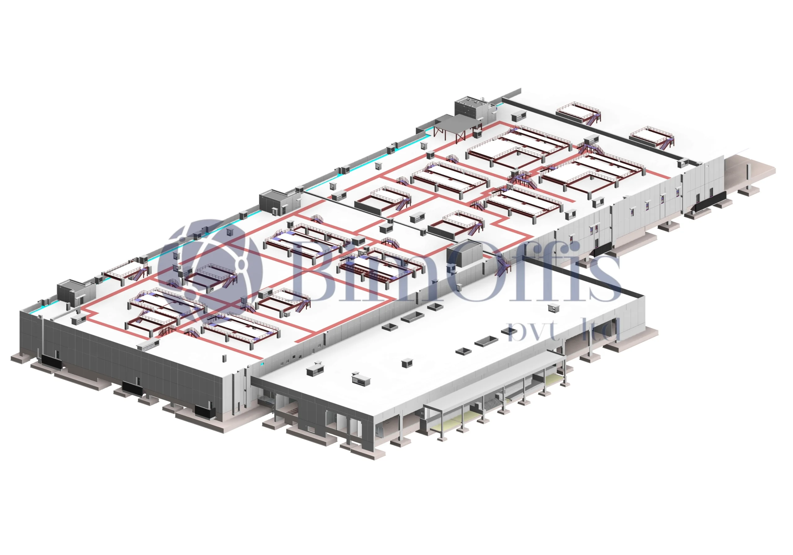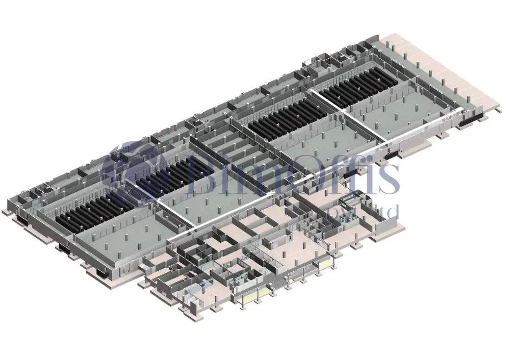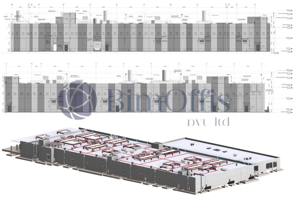 BimOffis delivered advanced Architectural BIM services for a large-scale data center infrastructure project in India. Our team converted client-provided PDF drawings into highly detailed LOD 400 and LOD 500 BIM models, upgraded architectural design data, and ensured clash-free coordination using Revit and Navisworks to support construction and facility management workflows.