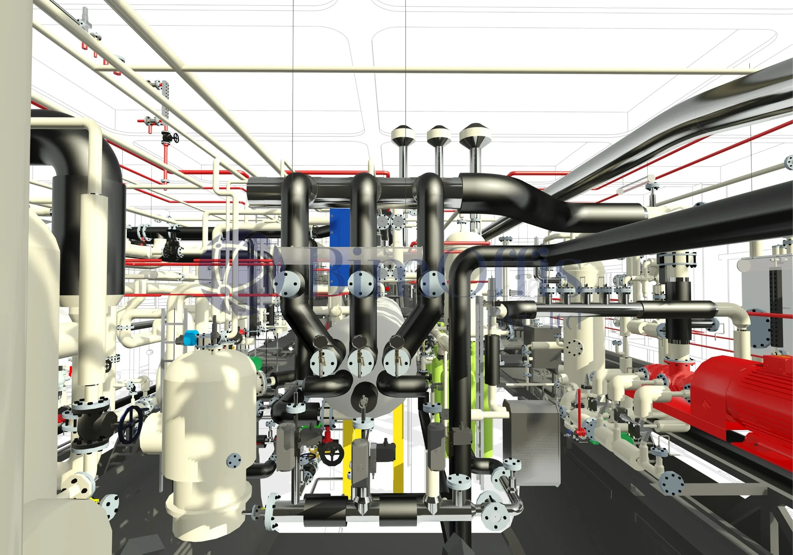 Preparing the model for interactive features, such as valve operations, required logical object grouping and clean component hierarchy.