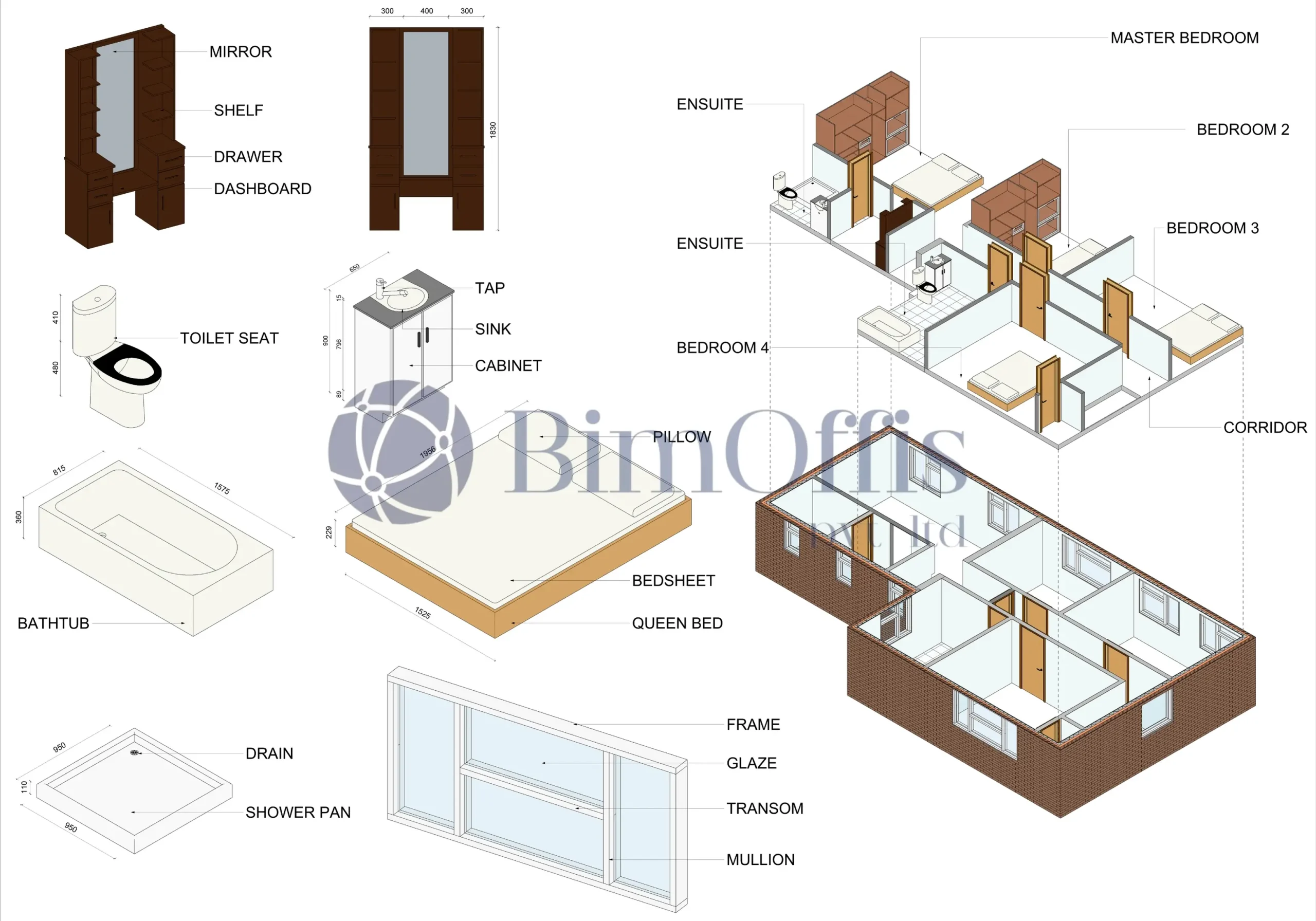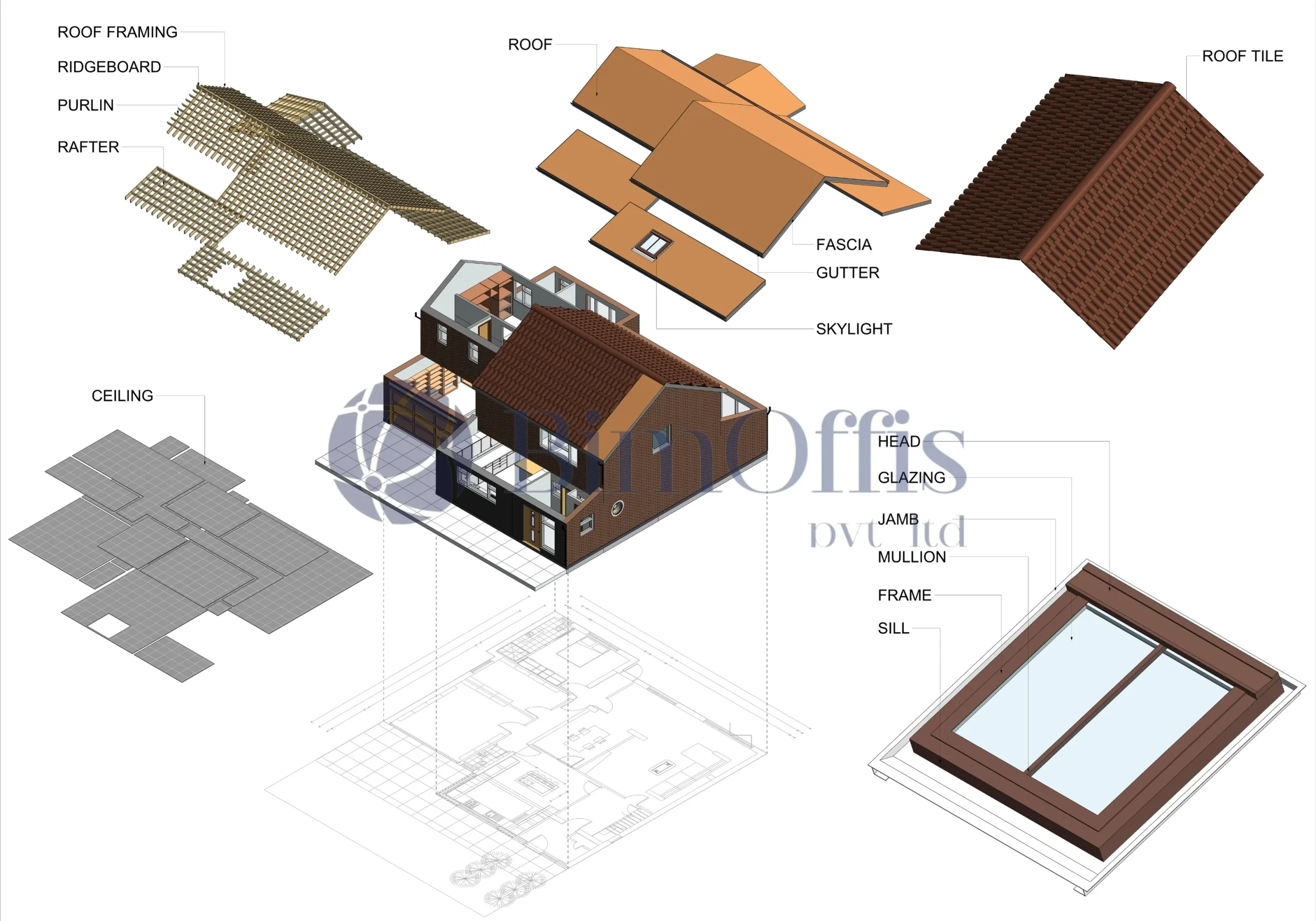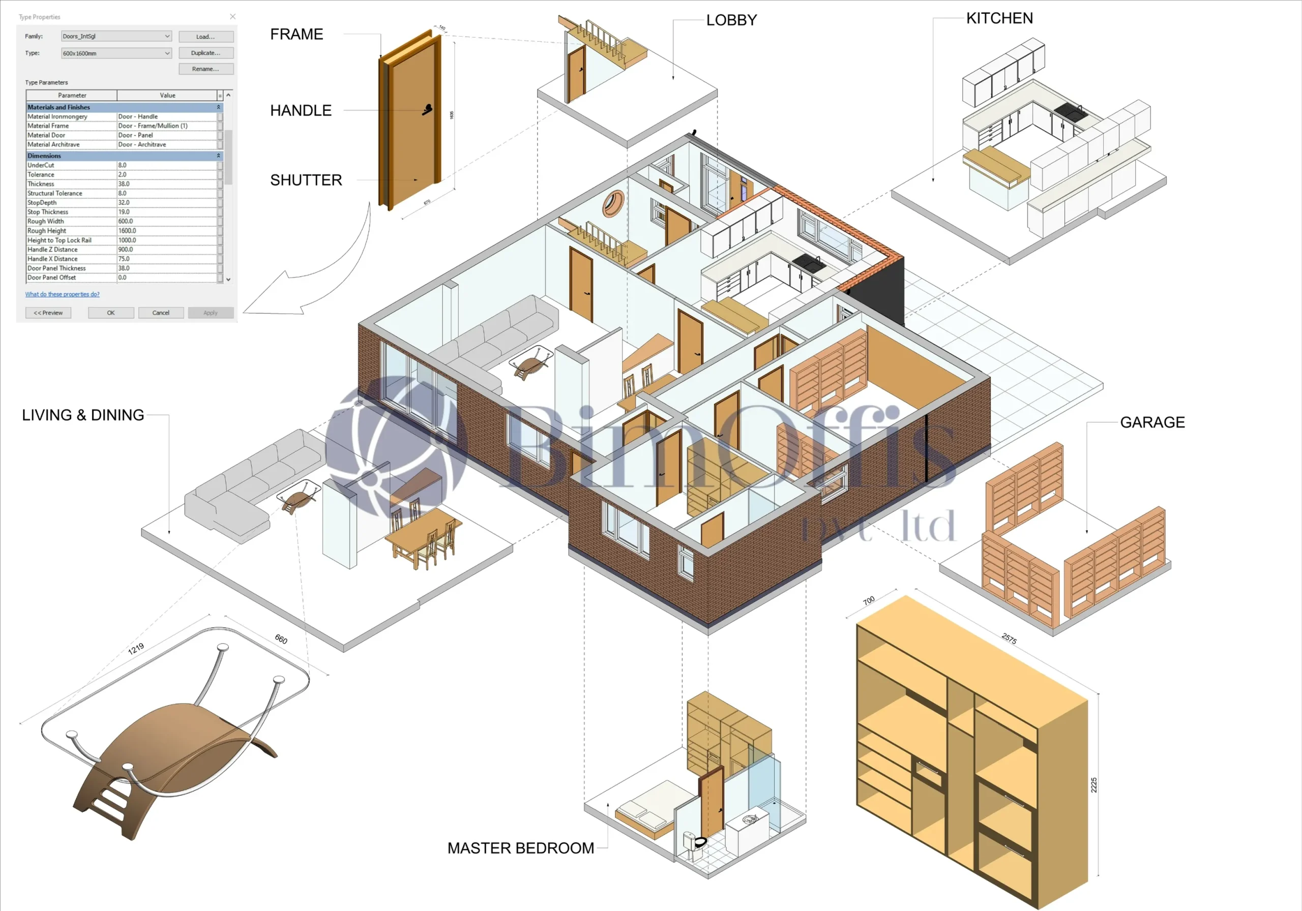 - Detailed 3D BIM model of the residential bungalow